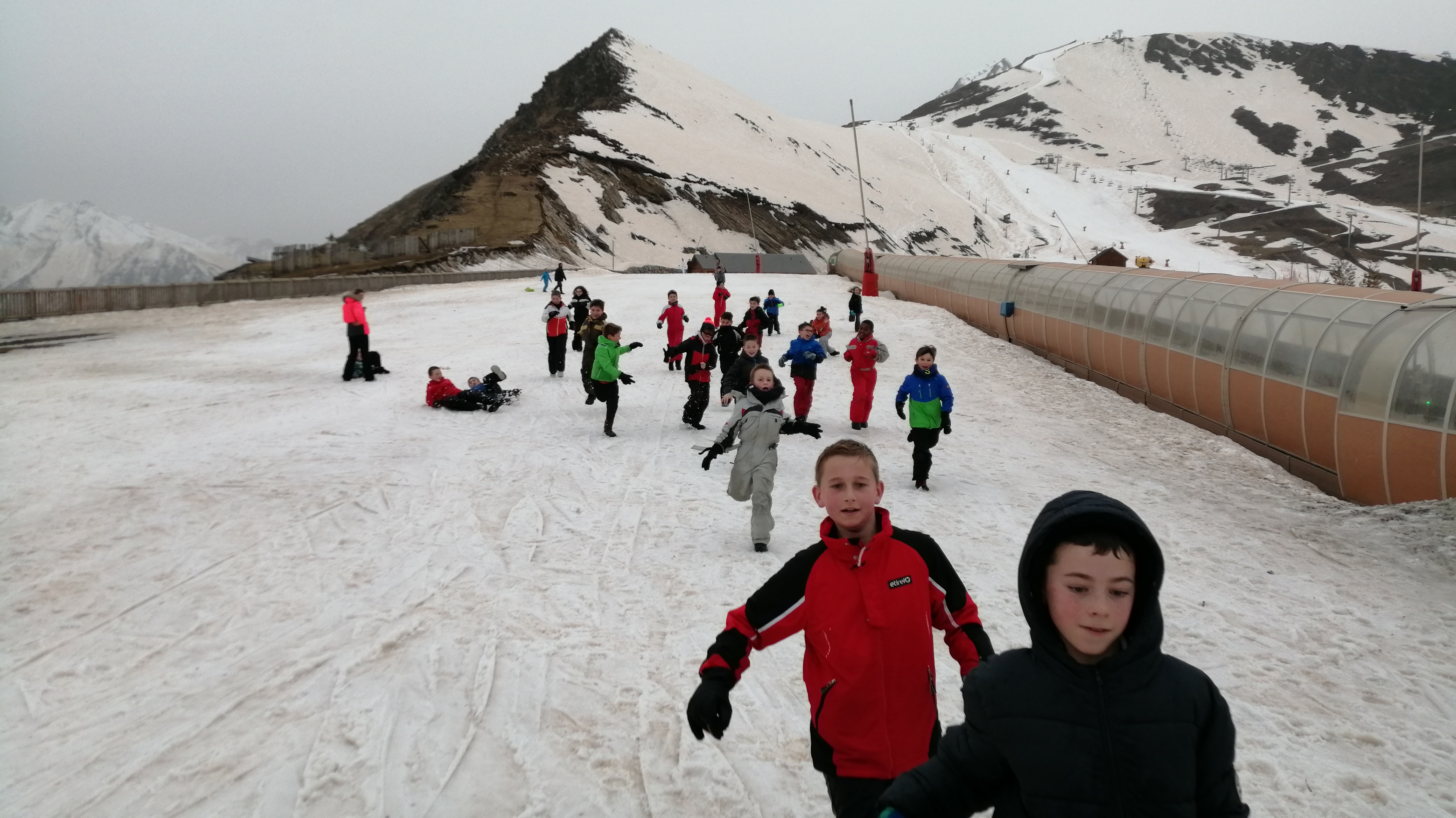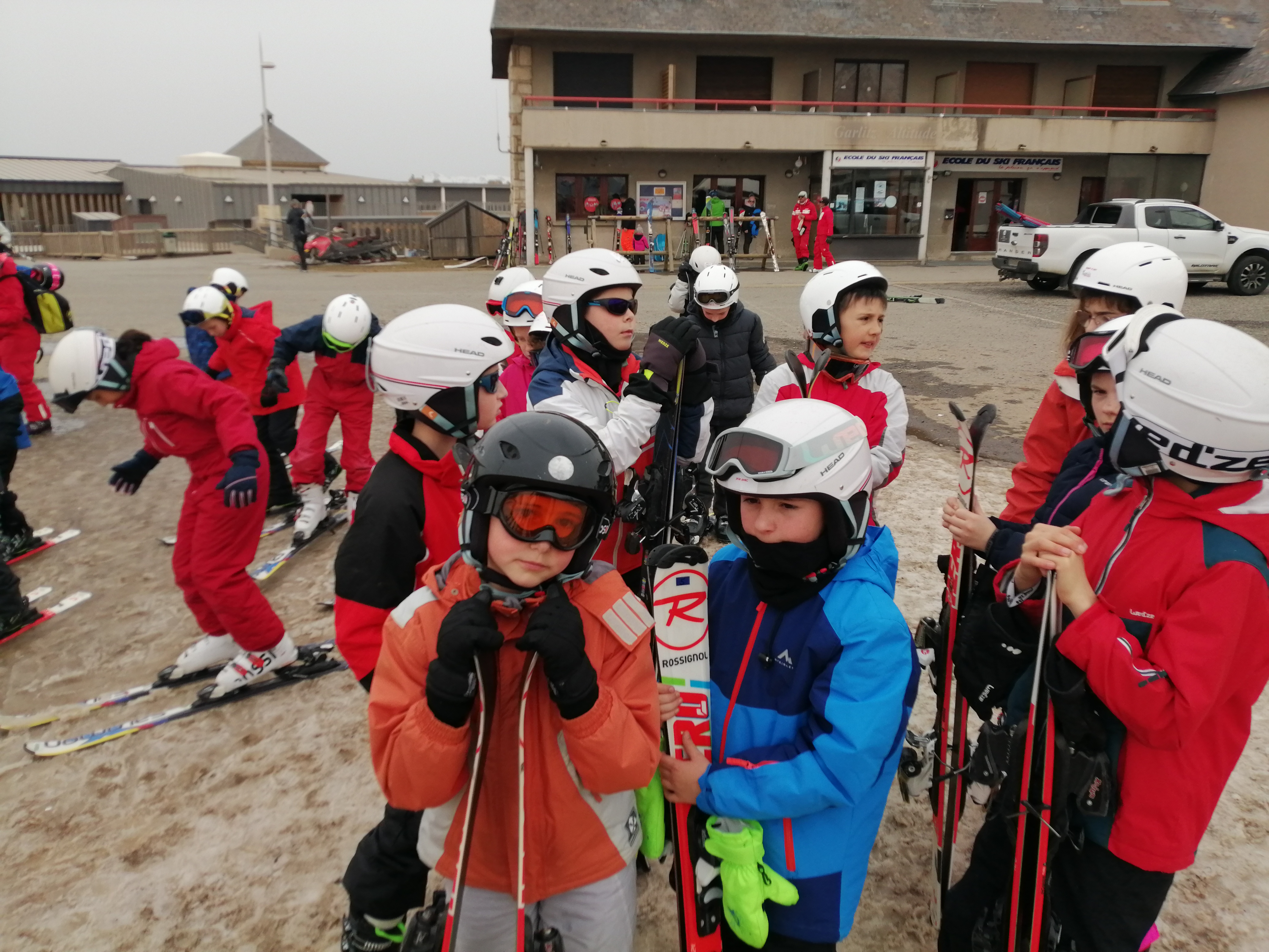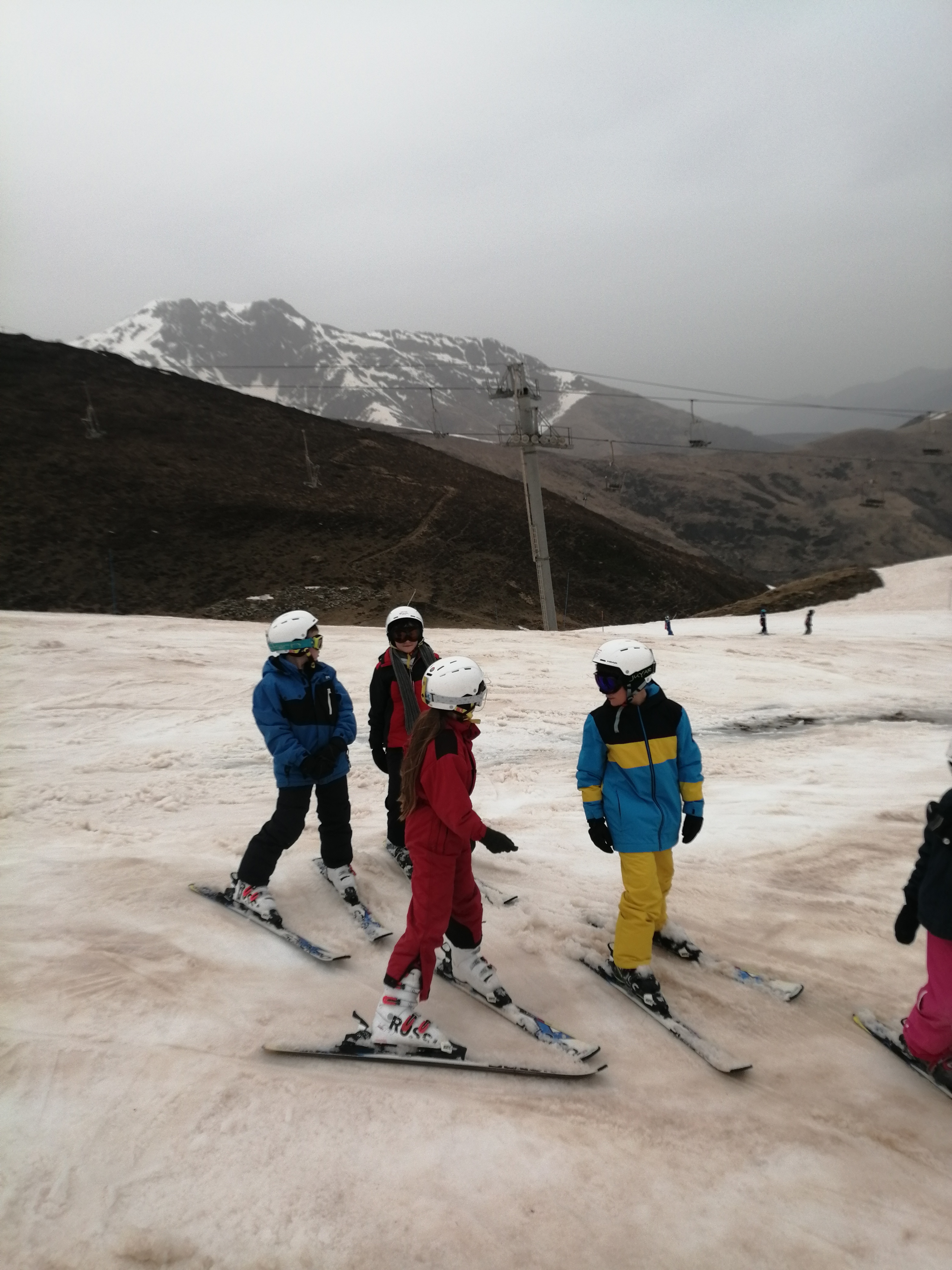 Ce matin nous sommes allés faire du ski. C’était super bien. On a fait des descentes, on a pris des tapis et certains ont pris le tire-fesse et le télésiège. Un groupe a pris la navette pour remonter en haut des pistes.