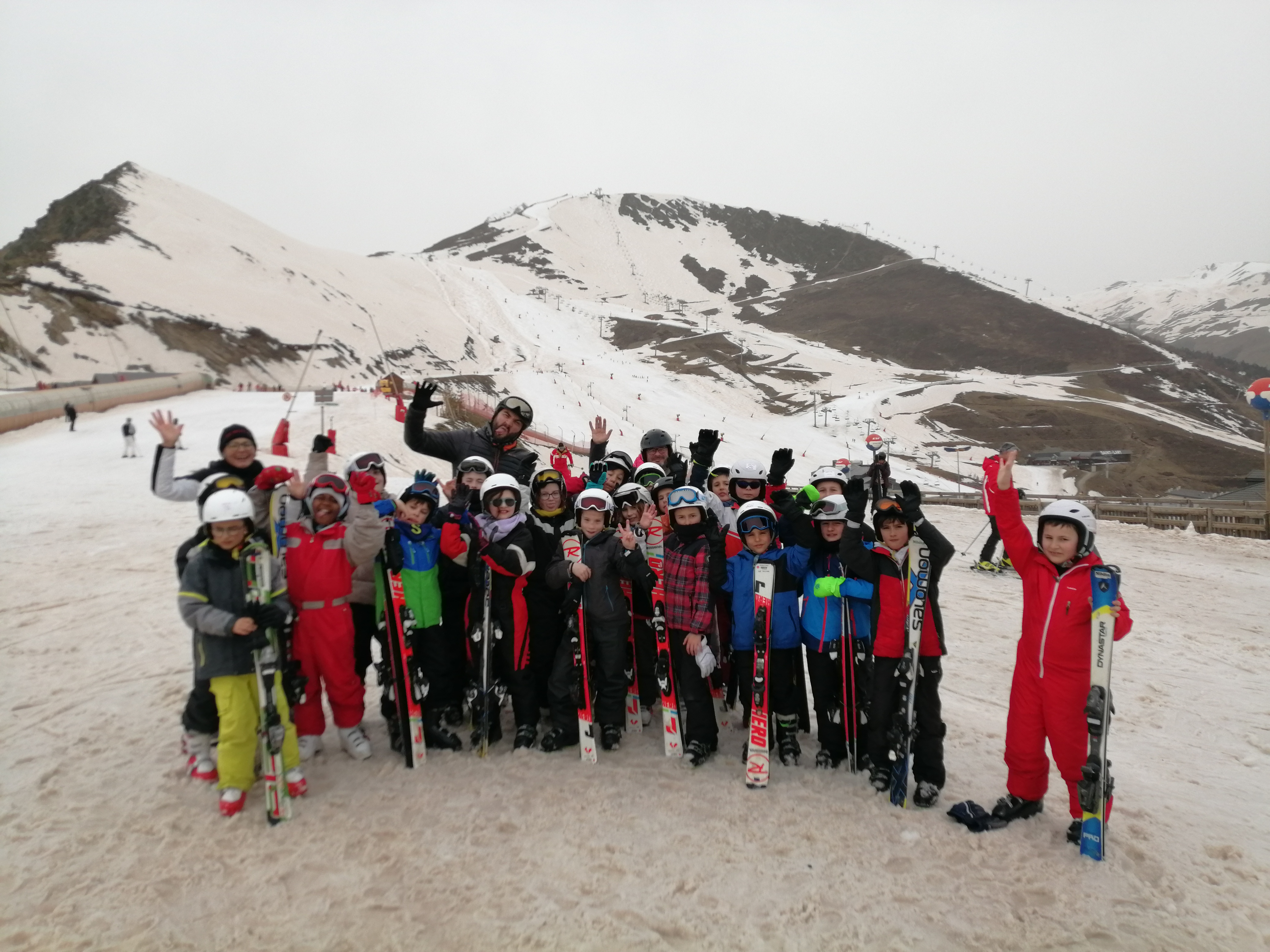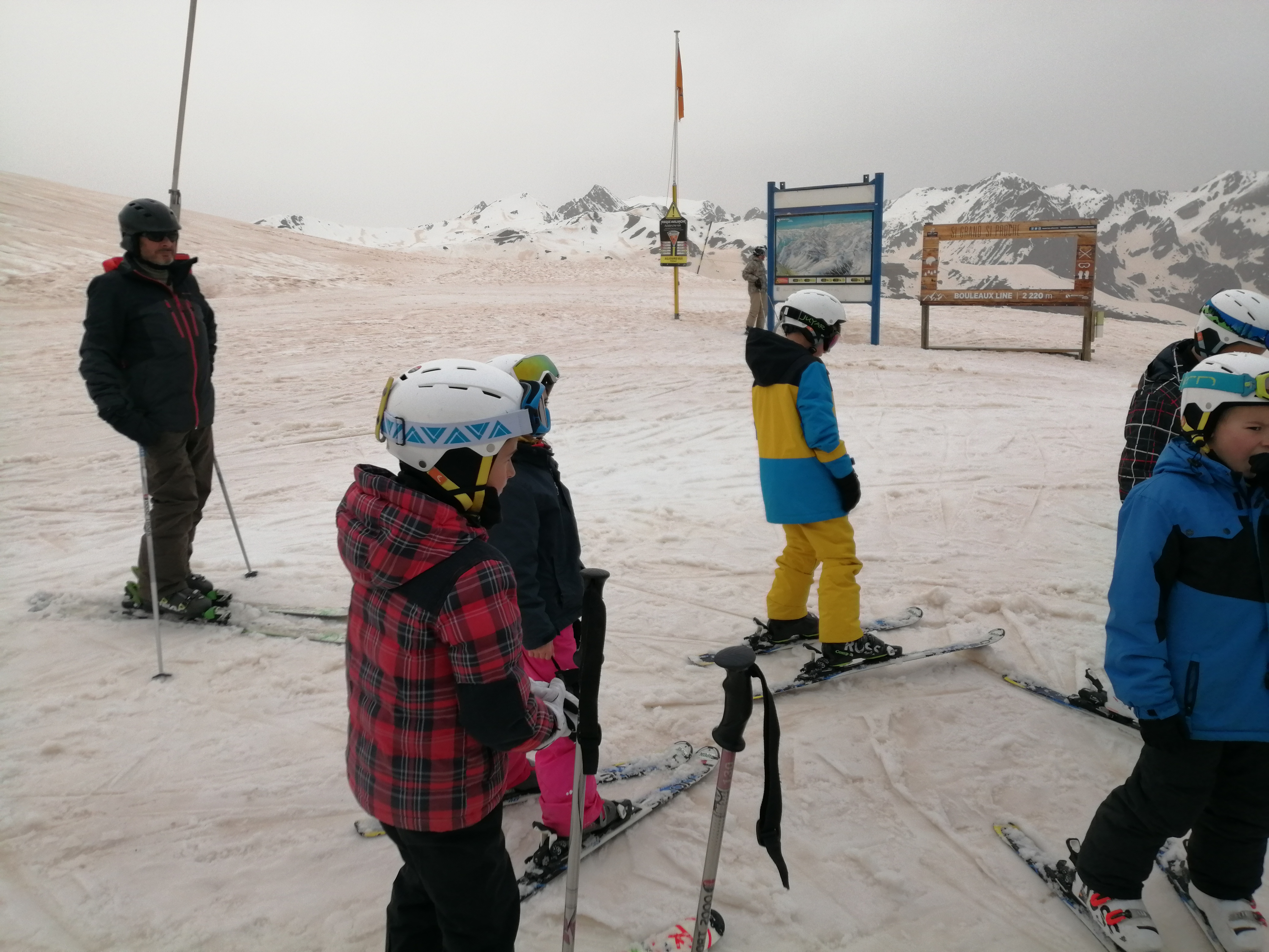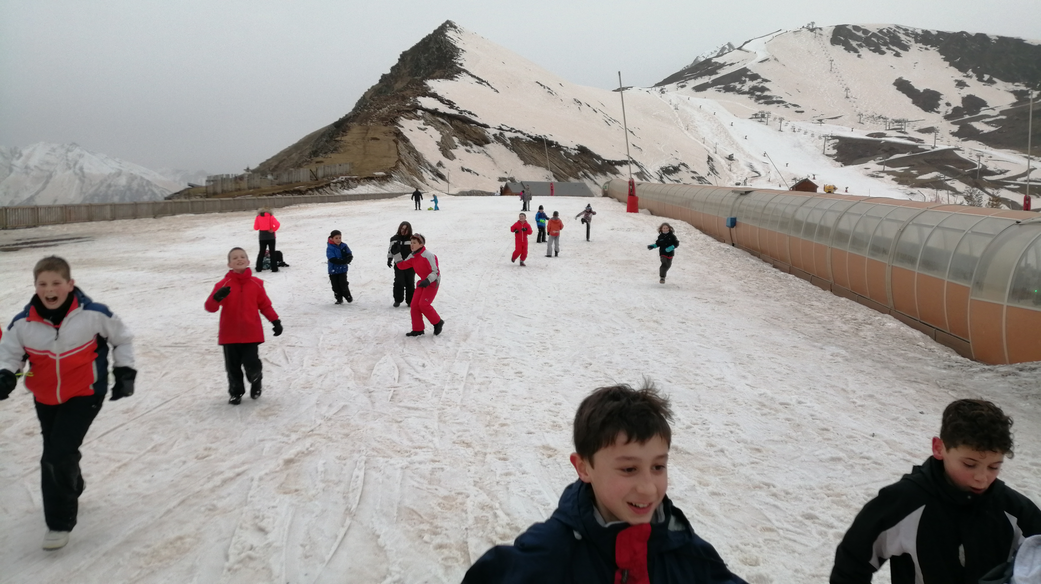 Ce matin nous sommes allés faire du ski. C’était super bien. On a fait des descentes, on a pris des tapis et certains ont pris le tire-fesse et le télésiège. Un groupe a pris la navette pour remonter en haut des pistes.